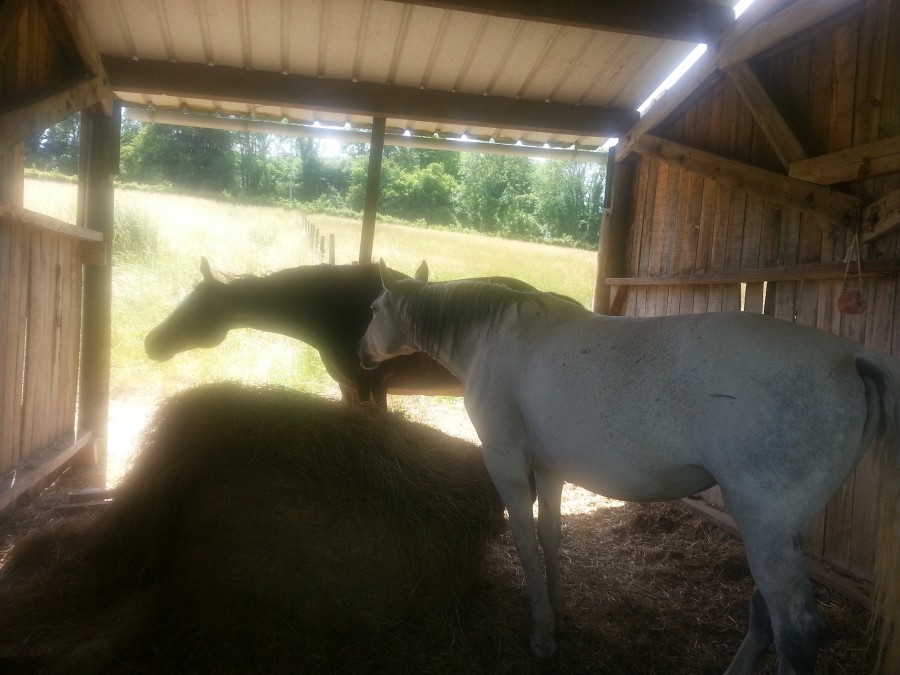 J'espère qu'elle pourra rapidement la sortir seule, car le palefrenier, qui cherchait quelqu'un pour sortir avec son cheval ( portugais également) s'est planté la fourche dans le pied le pauvre!!! Du coup arret de travail.