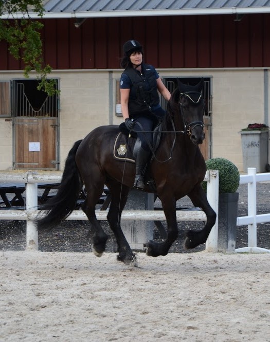 je lui ai rendu visite plusieurs fois pendant les 2 mois de "travail "où elle est restée là bas; jument vraiment tranquille, je suis même montée sur son dos dans la grande carrière sans longe au pas!