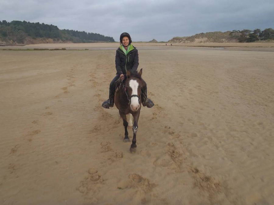 Récemment nous avons fait une sortie à la plage lors d'un week-end en amoureux dans les Côtes d'Armor. C'était génial, on a fait deux longs galops sur la plage à vive allure. Le centre équestre était tout près de la côte et nous nous sommes vite retrouvés sur le sable à marée basse, à traverser les flaques et les trous d'eau. En été ils se baignent ici avec les chevaux à marée haute