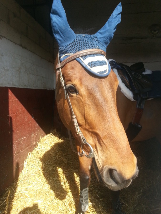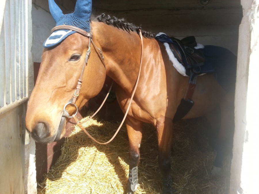 .... donc à 12h30, j'étais aux écuries pour préparer la miss ... heureusement que je suis venue à l'avance car elle a du se rouler dans le paddock .... elle était "cracra" !