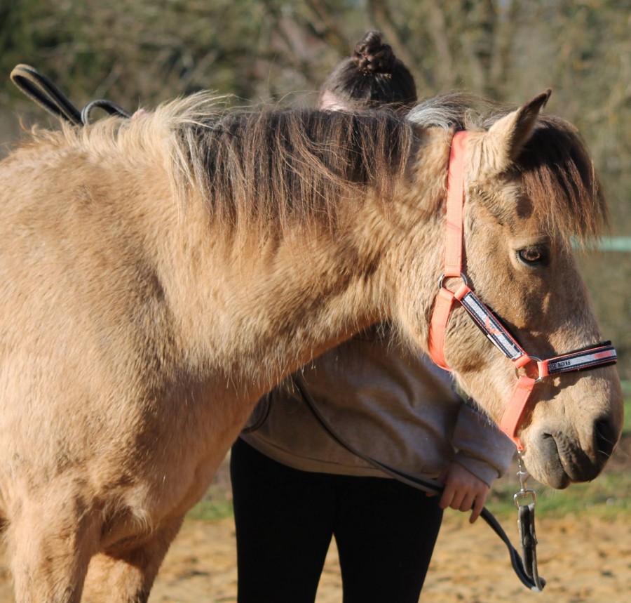 Ma prof a du l'arrêter 3 fois devant 1 saut et 1 fois devant la barrière de la carrière).