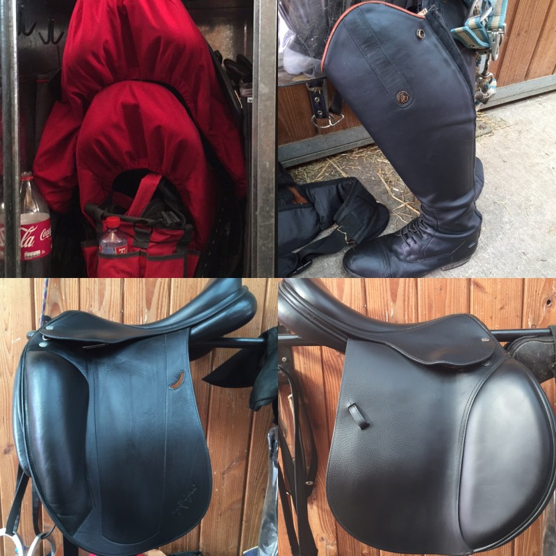 Hier apres le départ de Momo (bien apres meme) j'ai enfin réussi à me motiver à nettoyer les cuirs et à ranger mon casier (je devais installer un deuxieme porte selle). Tout est propre ou presque reste mon filet et un howlet mais il etait dans mon ancien casier du coup j'ai oublié. J'ai mis mon armoire à pharmacie dans mon casier (Betadine Jaune / Rouge / Aluspray / Compresses / Biseptine / Creme cicatrisante / ainsi qu'une mini boite à pharmacie pour nous bipède vu que je suis un peu une Pierre Richard)