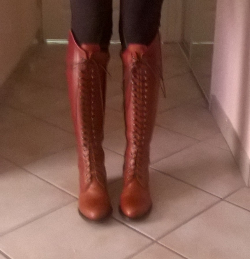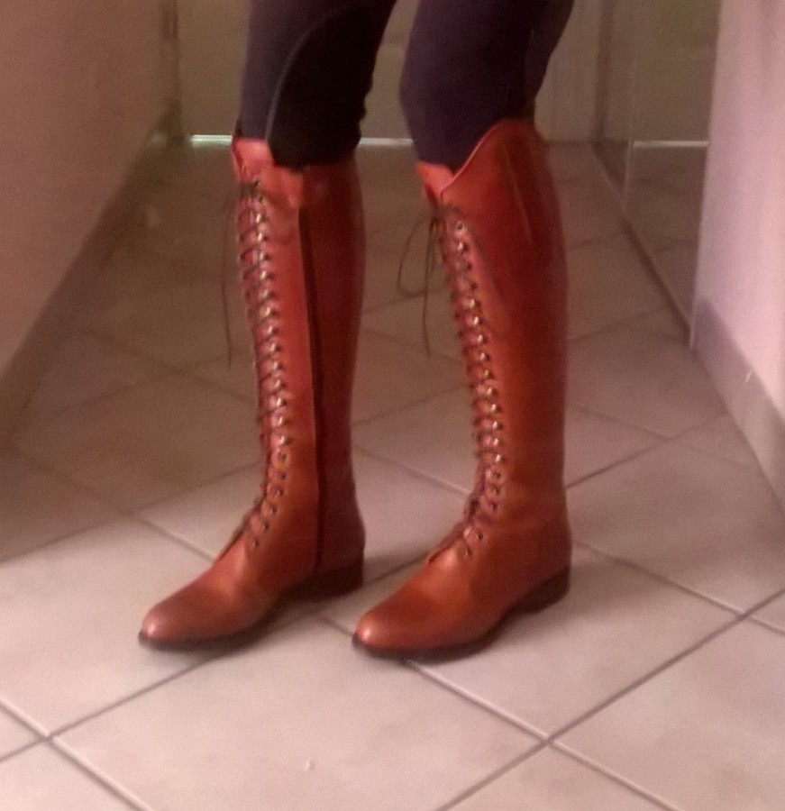 La premiere année, quand j'étais dans l'autre club, je montais avec des bottes en plastique 1 er prix; ensuite j'ai changé de club pour celui ci, et investi dans des boots et mini chaps de bonne qualité. Evidemment j'étais mieux! Mais là où je me suis vraiment apperçue du changement c'est la semaine dernière. Il faisait tout moche, avec de la boue partout, j'avais donc mis mes bottes en plastiques pour ne pas achever mes boots ( plutôt en fin de vie hélas...) et dans le feu de l'action, j'ai oublié de changer de chaussures...et bien c'était horrible comme sensation! J'étais super mal à l'aise, bref, du bon matos ça change la vie