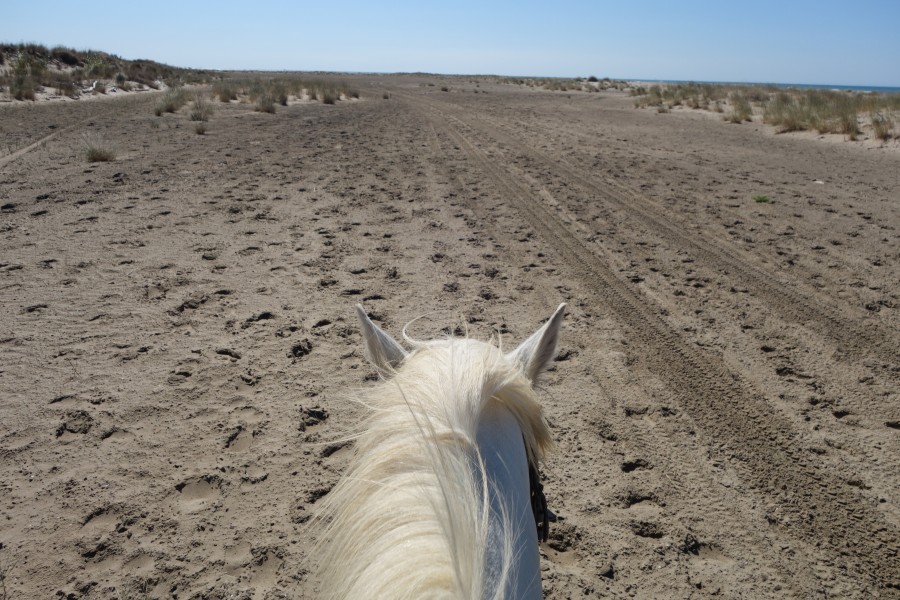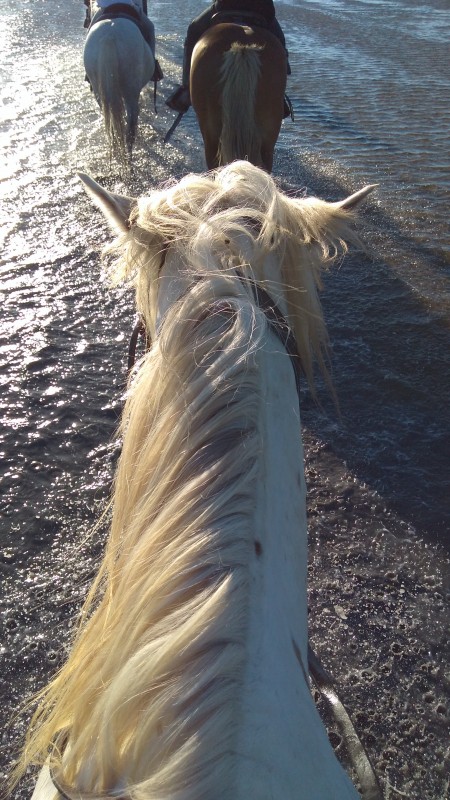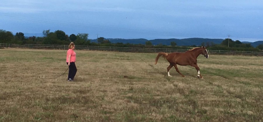 Je pense que si tu étais plus en arrière, tu serais moins secouée au trot assis, et du coup, ce serait plus facile pour toi de lui demander le galop en restant bien ancrée dans ta selle.