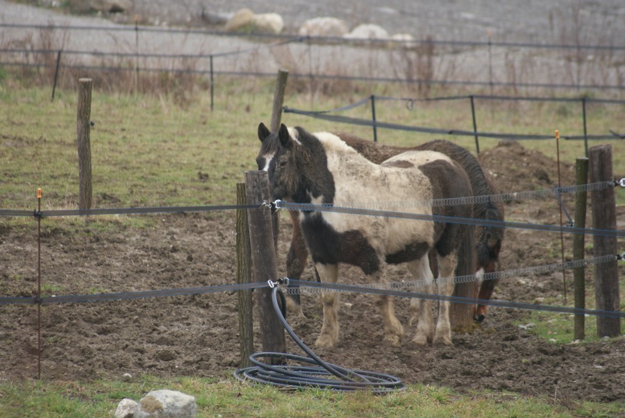 Elle est courte sur pattes, et elle a une grosse encolure, donc pour les couvertures décat, j'ai dû prendre une couverture en 200g un peu trop grande, pourne pas qu'elle s'étrangle en broutant, mais du coup, les courroies de cuisse sont un peu trop basses, et elle tombe un peu sur les épaules.