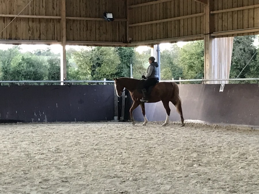 Quels sont les exercices en selle? Tu l’as fait sur Lewis toi? Je me demande si elle resterait zen en manège ; elle n’en a jamais vu :/