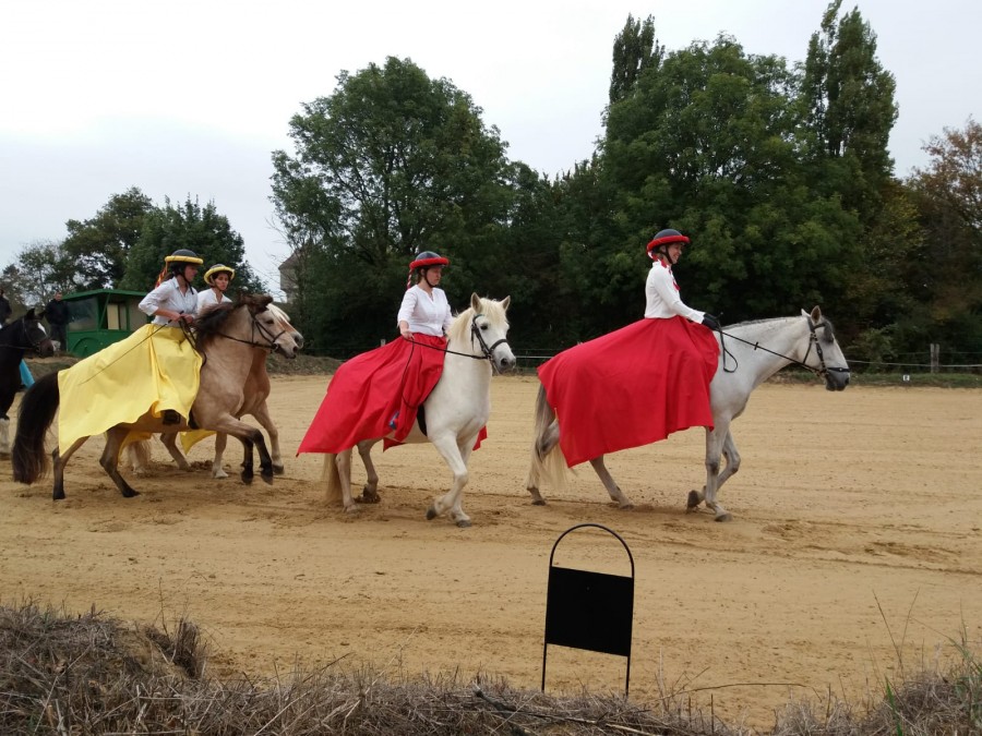 Elles ont travaillé le 2 pistes avec épaules en dedans et cessions au pas et au trot; elle était magnifique.