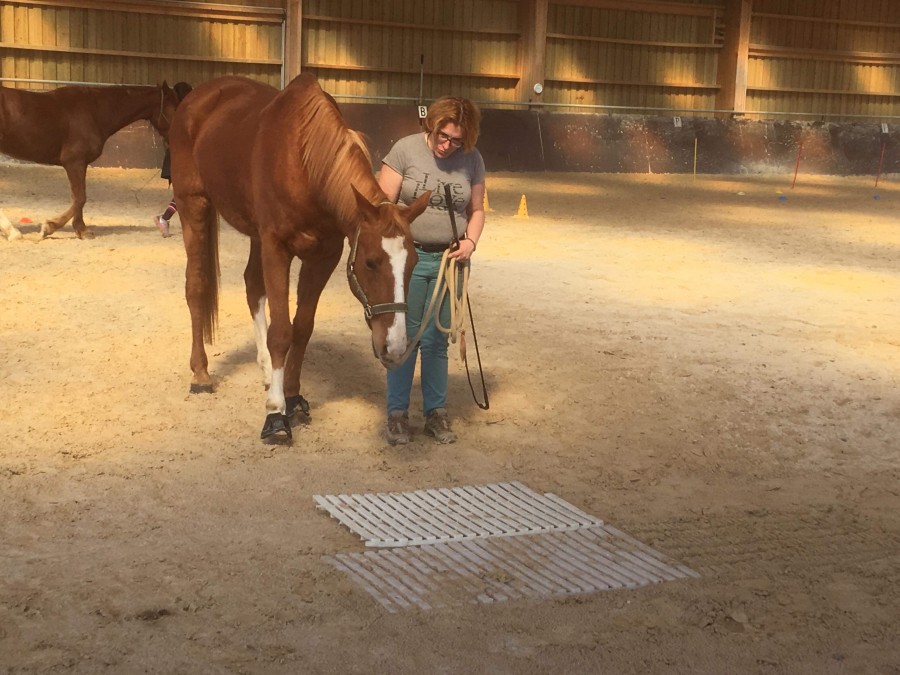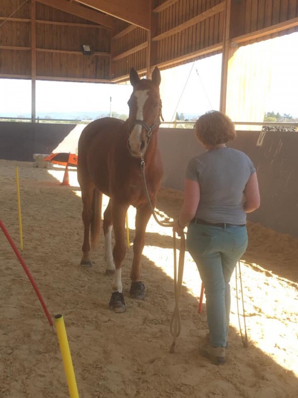 Donc une fois l'osthéo passé pour nous deux, on commence les cours avec la proprio de l'écurie, deux fois par mois. c'est une cavalière pro de dressage