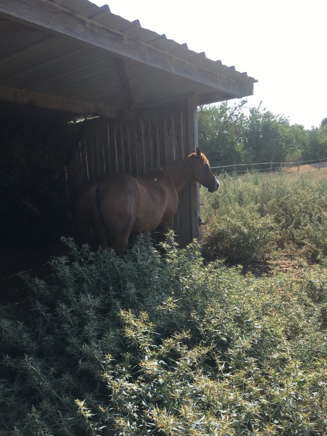 Elle est retournée la journée avec ses amis, mais entre les insectes, et les piquants du pré qui lui font des croutes (ils sont super urticants!) l'autre jour je suis arrivée le matin pour la sortir, elle a accouru en trottant