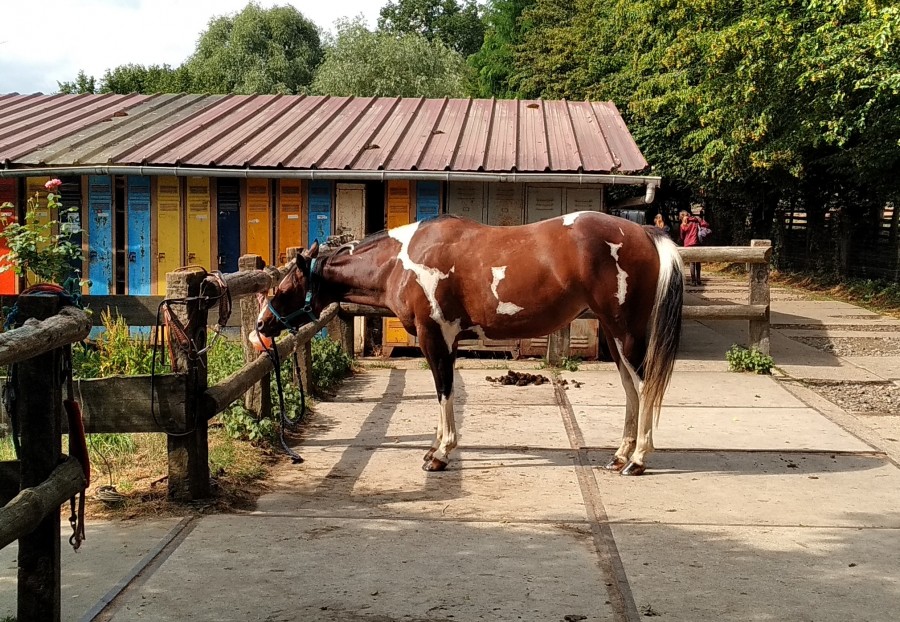 Zen à l’attache, sage au montoir et montée, sauf qu’elle a décidé que vers le buisson ça faisait trop peur:/