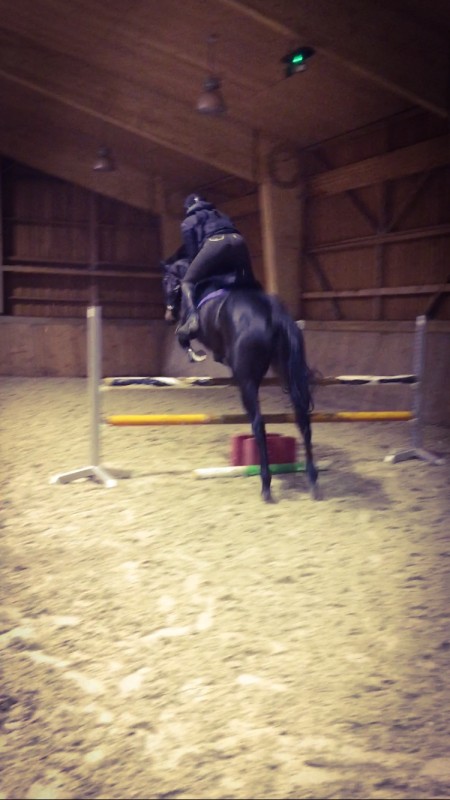 Enfin si, en 2013 dans le manège où j'ai repris, avec la super bonne petite jument de club hyper plus que professeur ultra gentille, j'ai sauté 2 fois 1 ou 2 petite croix de 20cm!