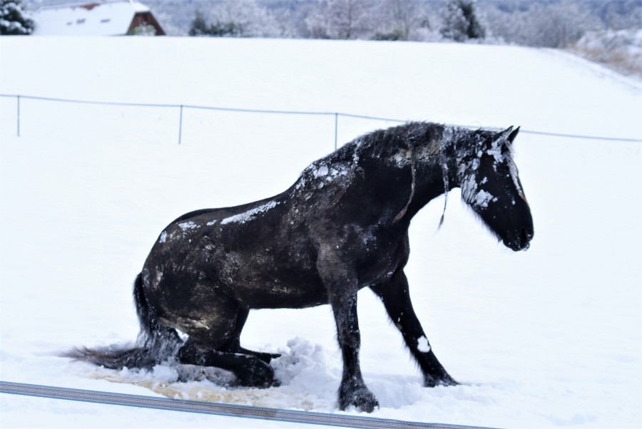 Un bonheur les balades à pied avec lui! Après l'enfer des balades à pied avec O... ici avec le pti poney c'est un régale! Plus qu'en faire plein plein plein et attendre le printemps pour commencer à le sortir en vrai balade ... monté! Pas juste le pâté de maison... Et puis seul en été si j'y arrive d'ici là... Car là par contre, faut lui apprendre!