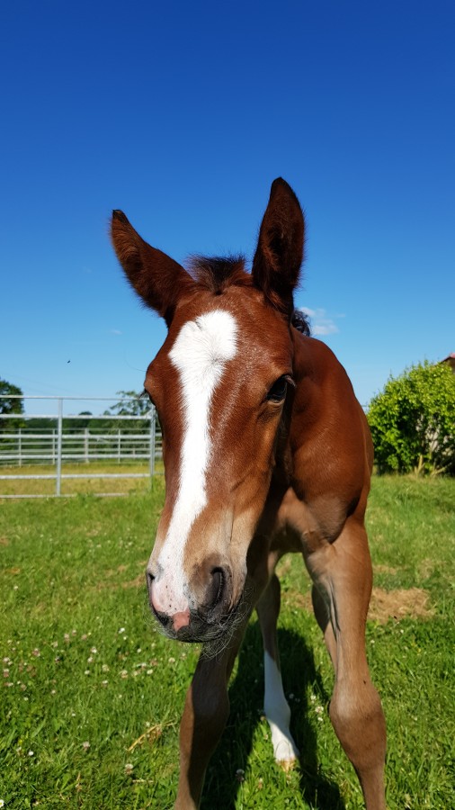 lilca le voici le p'tit coquin, c'est un gaillard bien indépendant et qui ne laisse gratouiller que depuis peu , c'est marrant comme j'ai chaque année un poulain parmi tous qui reste réservé alors que les autres sont des glues