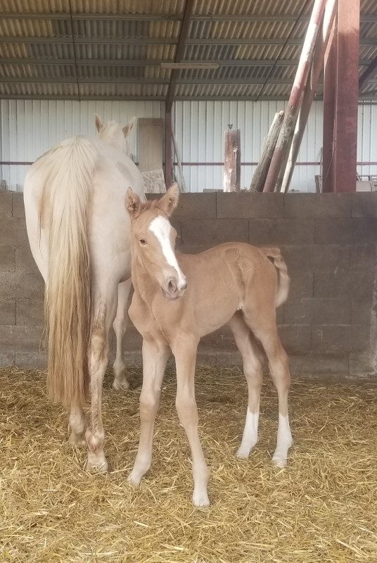Encore une jolie naissance ce matin par Blue Diamond et Extrême, une fabuleuse pouliche isabelle
