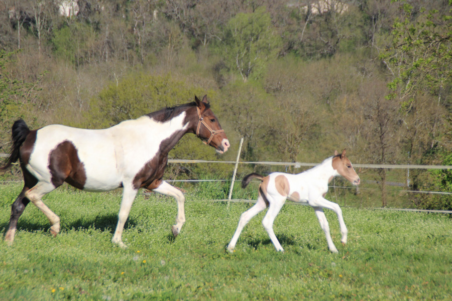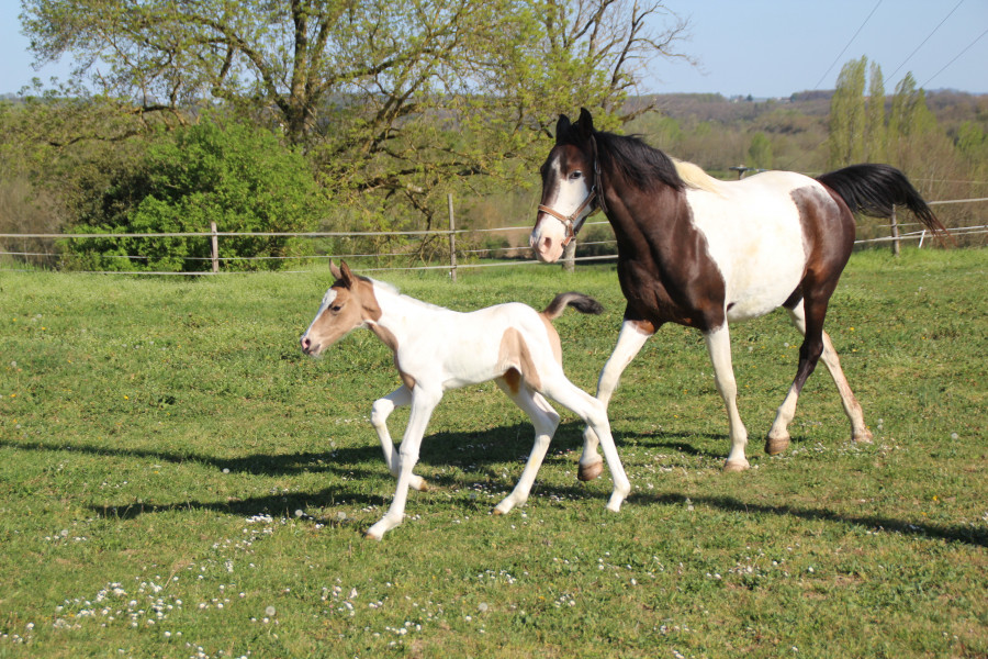 - Viconte des Neiges AA par Pasquin Fleuri et Furia V SF par Lance Pierre AA , étalon Tobiano et DW qui produit donc systématiquement des poulains pies , souvent très spectaculairement tâchés , il est disponible à la saillie en IAF et IA RT , au Haras de Villeréal , aux côtés de :