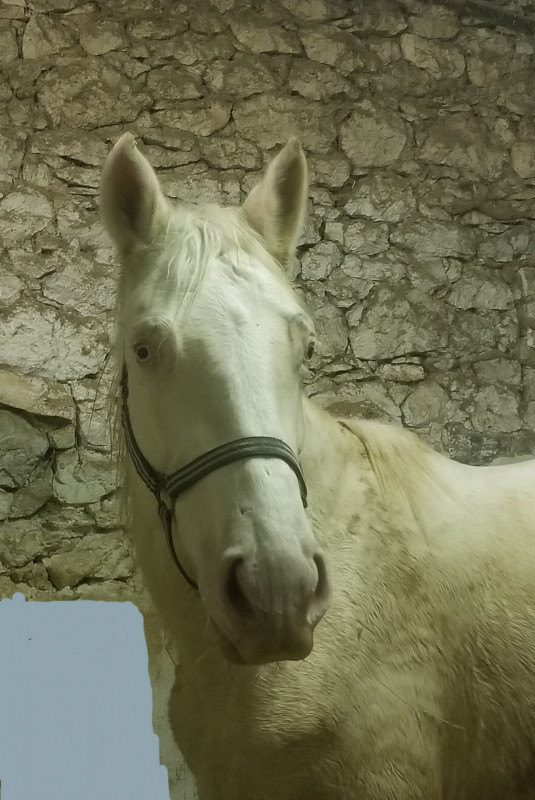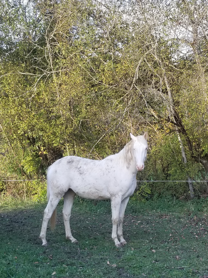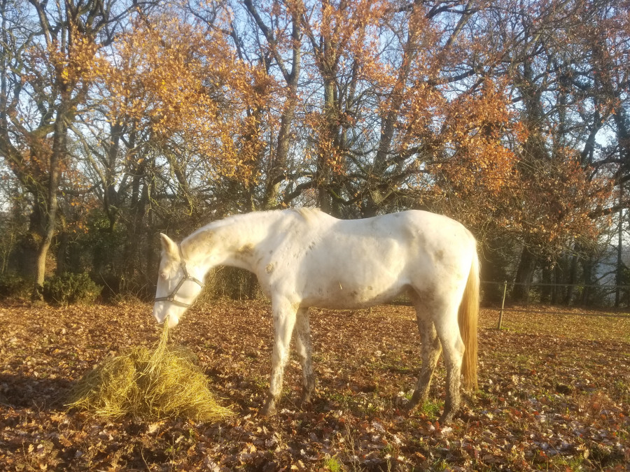 spaghett de près on voit bien qu'il a du poil alezan éparpillé sur le blanc, mais ça ne dessine plus de zones , sauf une tache plus franche restée au niveau du ventre. Lady s'est éclaircie en 6 mois, et le naisseur de Comtesse des lièvres , une des 1ères Viconte, actuellement blanche , m'a indiqué qu'elle était née comme Lady