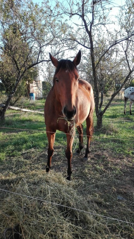 Bon il semble gêné de l'épaule gauche, il a le dos sensible, mais après rapide inspection je lui ai foutu la paix, au pré avec un gros tas de luzerne et quand j'y suis retournée il semblait normal.