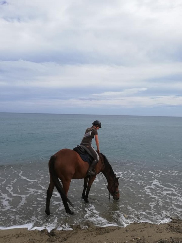 Shining était insupportable. Il voulait galoper, donc voulait absolument aller sur le sable. Donc à un moment j'ai dit ok, j'ai fait une pression de mollet, il est partit comme un dingue mais sans aucun résultats vu qu'il pataugeait dans le sable mou, c'était ridicule, il était frustré et d'une humeur massacrante. Pi après il voulait rentrer au van en mode "mais c'est nul, on rentre", il n'arrêtait pas de me tracter, bref, pas un grand moment de plaisir!