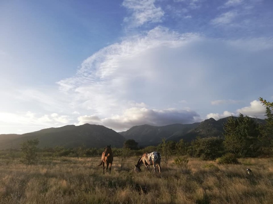donc après une magnifique traversée dans les paysages des Corbières, et une traversée dans les petites rues du village avec mon attelage (plus jamais je n'appréhenderais une maneuvre avec le van avec ce que j'ai fait ce WE... entre le reculer en S pour rentrer le van prêt à repartir dans le terrain de ma copine et le reculer en courbe dans les petites rues des Corbières, je suis zen ^^), on arrive au Ranch, le vent est un peu tombé, et on a fait tous les ateliers!