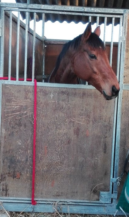 Tout le monde me dit qu'il tique quand il voit des gens, pour attirer l'attention quoi. Mais sinon, il prend son foin dans un coin, et il vient le manger à la porte en regardant le paysage. Une vraie commère.