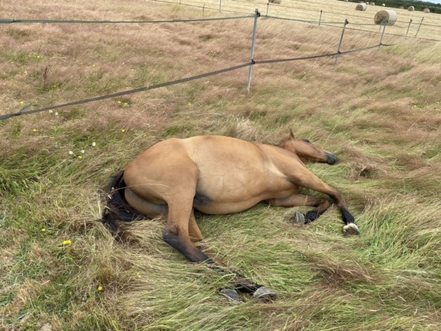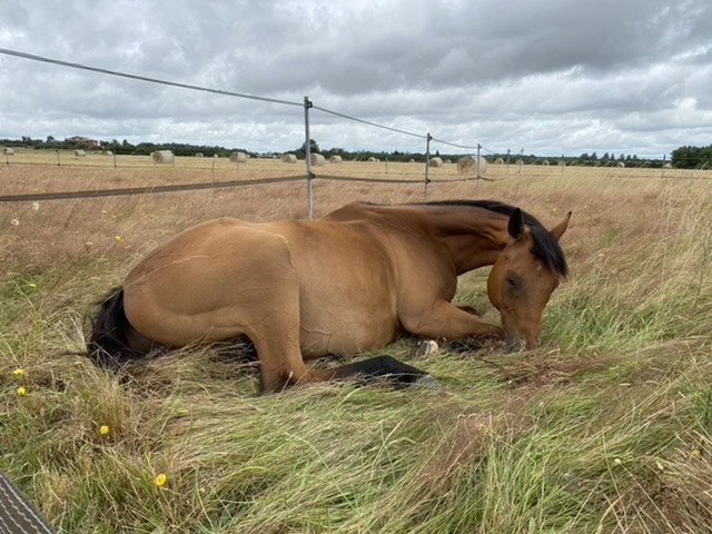 on a bossé quand même, il semble y avoir un blocage à la hanche gauche quand même, il refuse de prendre le galop à "froid" (si on peut dire vu qu'il vit au pré, qu'il fait 26°C et qu'il a bien marché avant) à main gauche.