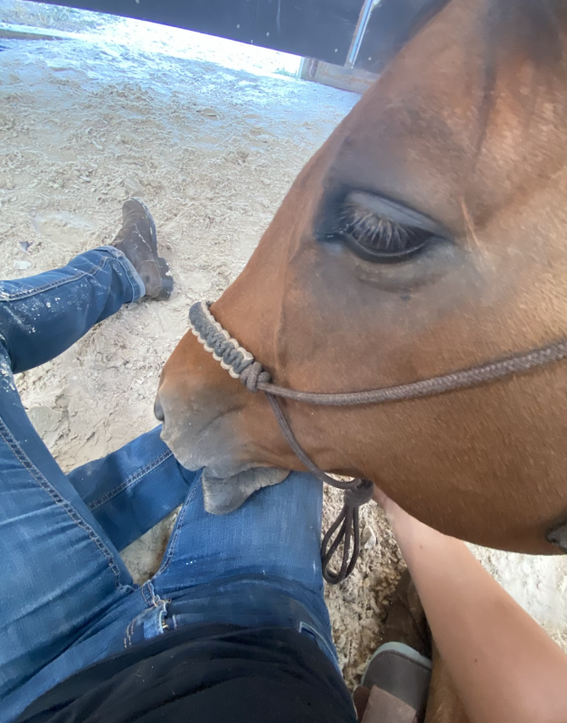 petit moment détente avant la longe lundi, on a fait un massage, puis un câlin, alors il s'est endormi.