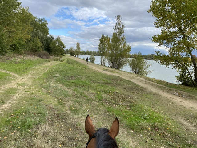 la première fois j'avais fait du ski nautique, les grands espaces lui donnant des ailes (et lui ôtant des neurones il semblerait). Là je commence la séance, je demande le trot, je compte 1/2/3, il se prend un coup de carot stick sur le cul en mode "hey, ho, action, réaction", du coup je l'ai réveillé. Premier départ au galop, il reste sage, second aussi. Au troisième il part en saut de mouton, je fais du ski nautique mais je ne le lache pas. Quatrième sage je me dis qu'on est OK pour le reste de la séance. Au 5eme, il est parti en vrille, j'ai lâché, et il a fait genre 10 A/R plein cul dans la carrière, en prenant bien de l'élan, et en ignorant de façon vexante mes tentatives de rappel. Bien sur c'est à ce moment là que la gérante passe en me disant "mais en fait il se moque de toi quand il n'avance pas sur le plat, il en a de l'énergie"