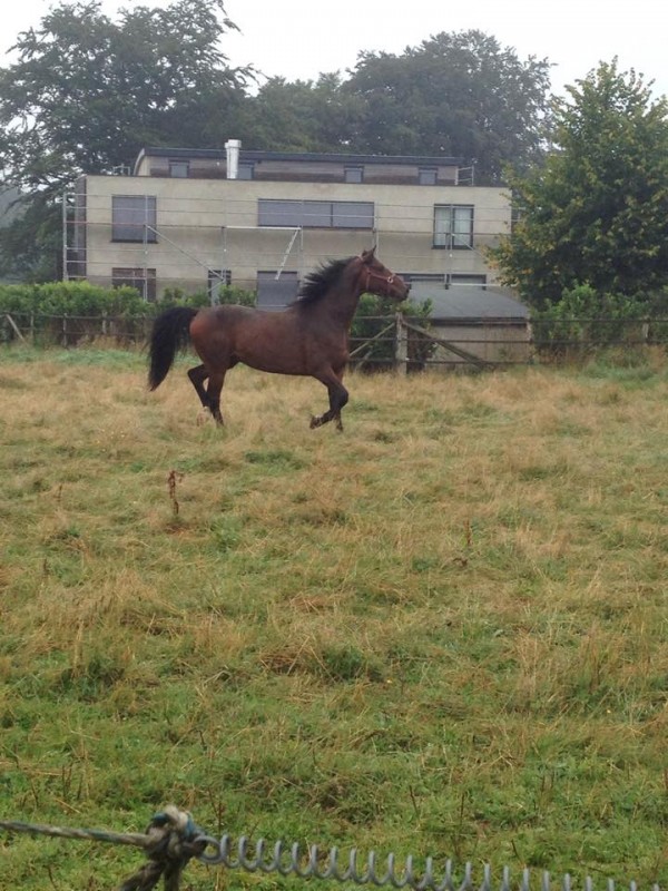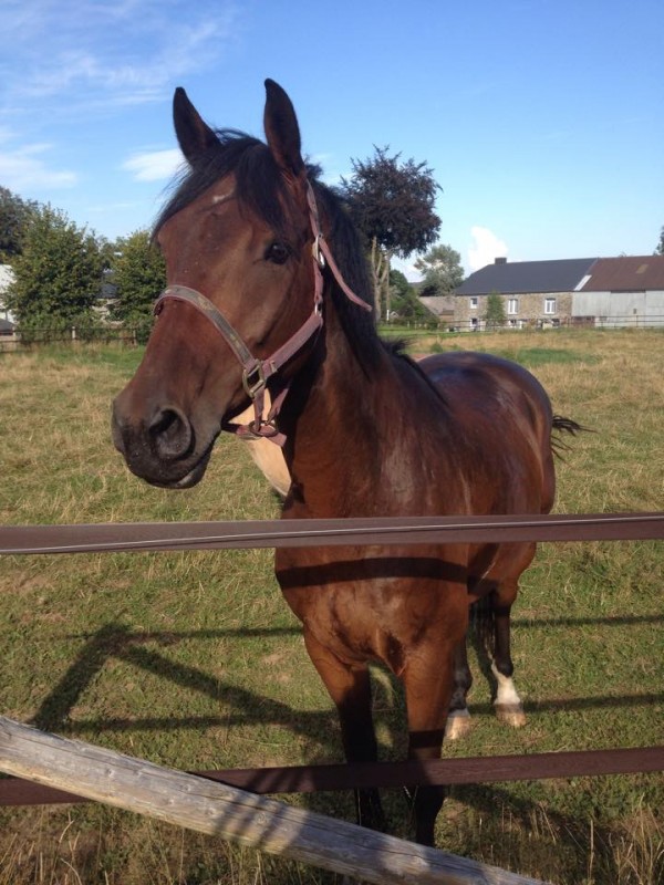 Ici ils le vendent car ils l'avaient acheté pour une jeune demoiselle de 12 ans qui commence à monter, ils ne l'ont que depuis 4 mois, du coup ils lui recherchent un poney maitre d'école et pas un cheval d'1m65 qu'il faut pas mal motiver en reprise !