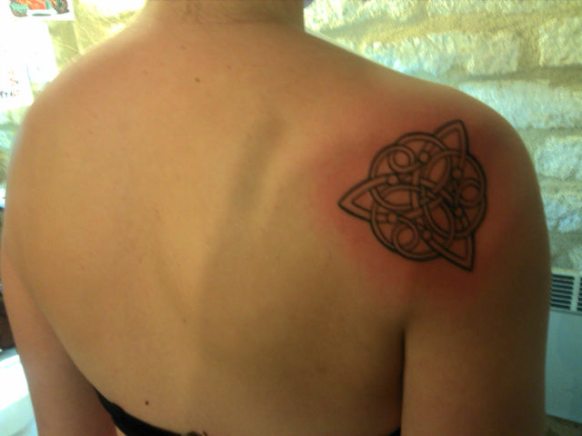 Après le piercing du cartilage je vous rejoint pour le tatouage je l'ai fait il y a une deux semaines exactement, c'est un symbole celte qui représente la trinité.