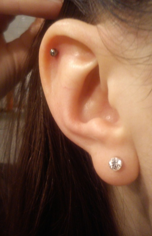 Le tout fait au pistolet " ouch ", pour l'helix s'est vraiment nul, j'ai eu une boule de cartilage douloureuse longtemps!