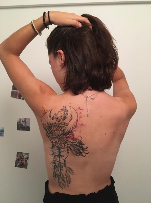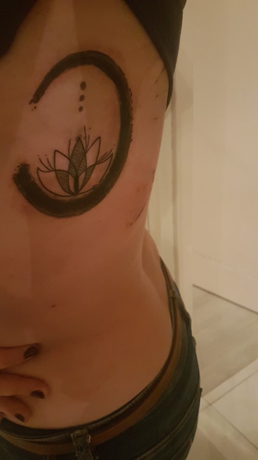 Débuté fin Aout, fini en Septembre, mon premier (et loin d'être le dernier, le 2nd arrive déjà bientôt ), qui signifie tellement pour moi. Au départ je voulais Deexen comme tatoueuse, mais le hasard, le superbe hasard a fait qu'un tatoueur a ouvert pile dans ma petite ville, et lorsque j'y suis allée, par curiosité et afin de discuter un peu voir si mon projet l'intéressait, ça a été le coup de coeur. J'ai passé pas mal d'heures et de journées sous les aiguilles, mais ça en vaut tellement la peine, j'en suis amoureuse, comme premier tatouage je ne regrette absolument pas, il est très symbolique pour moi, et il l'a tellement bien réussi