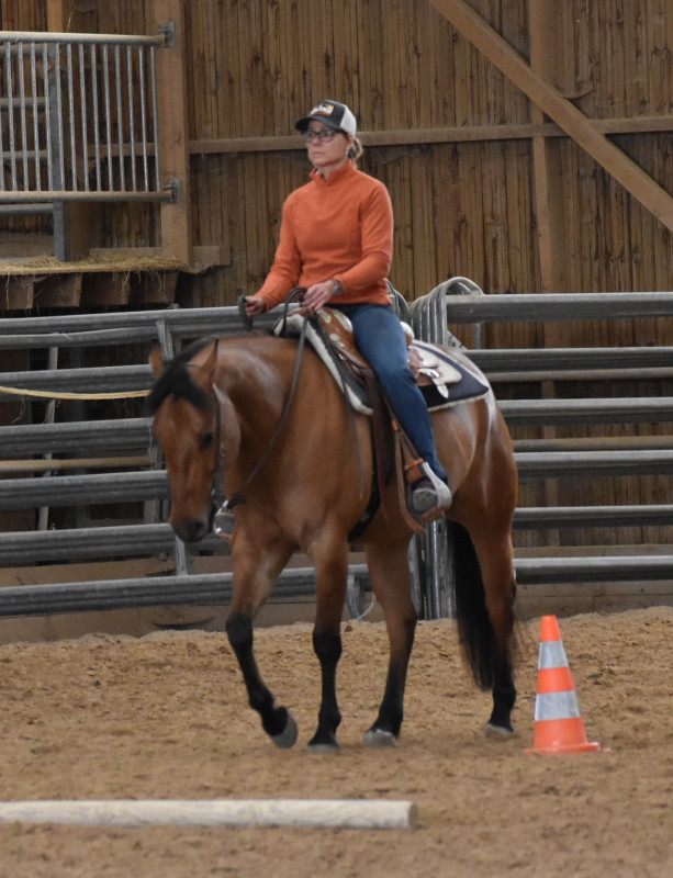 Là en ce moment on travaille un peu plus sur les départs et la qualité du galop, et j'espère que Lyne aura plein de bonnes astuces à me donner pour améliorer toutes mes transitions incluant l'arrêt...