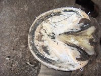 Et quand je lis qu'il faut parer selon l'alignement osseux du dos ou des vertèbres, c'est vraiment n'importe quoi. C'est même très prétentieux puisque complètement impossible. Le parage va souvent améliorer la situation car le pied va mieux se dérouler, talons en premier, sans douleur.