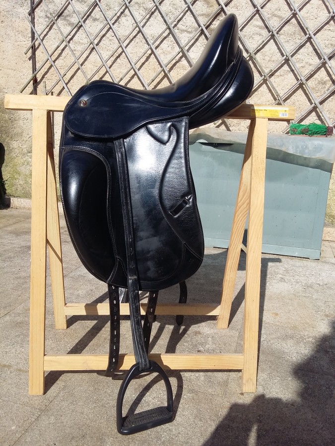 Les +/-: Très confortable, arçon flexible, super pour le chevaux ayant un fort garrot, dégage très bien la colonne du cheval, cuir et coutures top qualité. Inconvénient selle très longue, poids +/- 12kg, pas du tout faite pour les dos normaux et encore moins pour les dos court.