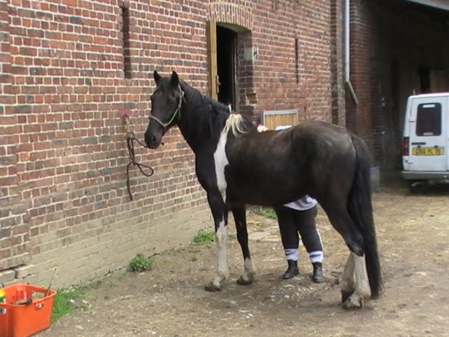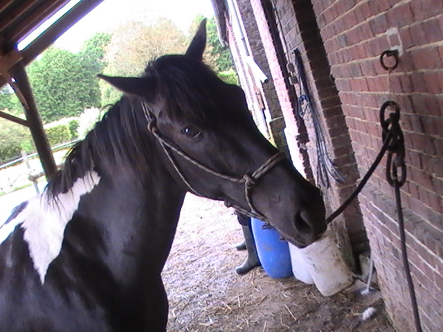 J'ai l'impression que son panier de pâture le rend agressif avec les autres : il n'est plus jamais avec son grand copain de pré, et tout à l'heure, en passant près d'une jument , il a essayer de la botter !