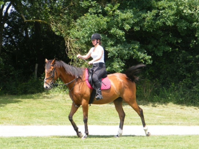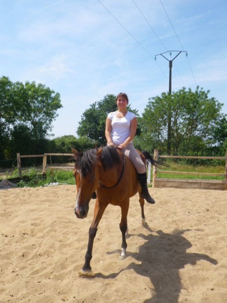 J'ai monté Lima, on a été en carrière et au début j'hésité mais au final je suis montée à cru (enfin à tapis) et là le bonheur !!!!!!!! j'avais mis une étrivière autour de l'encolure pour m'y accrocher au cas où (car elle n'a pas de crinière au niveau où l'on peut s'y accrocher) et m'en suis même pas servi !!!! On a fait plein de jeux dont un relais des 4 coins (faire le tour de la carrière le plus vite possible) et j'ai fait 2 passages au galop sans me tenir, sans tomber (lol) et sans être déséquilibrée, j'ai même fait une petite pointe de galop rapide ! mais franchement j'ai ADOREEEEE !!!!