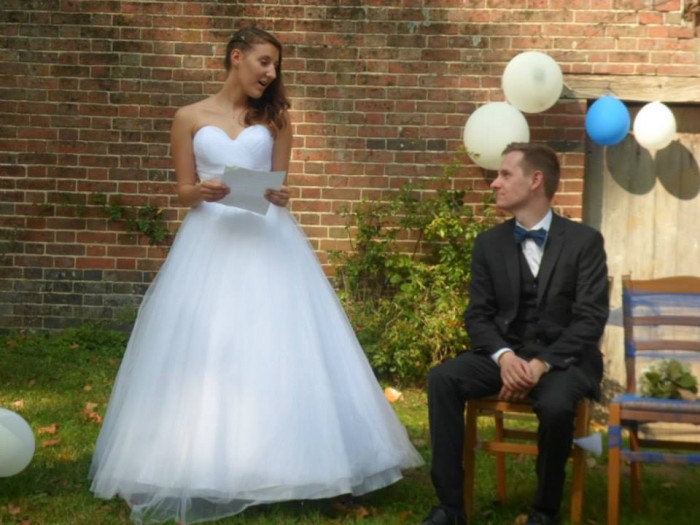 Et pendant la cérémonie laïque, mon discours à mon maintenant mari