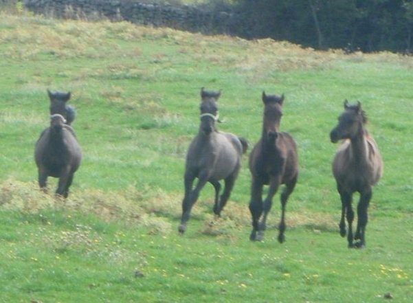 Les poulains sont désormais sevrés et ont été lâchés ensemble dans de nouvelles pâtures! Ce fut l'explosion de joie apparemment! Après le mois de box/paddock/pré pour les habituer à être manipulés et vivre sans leurs maman, se retrouver ensemble dans de grands espaces fut très appréciés!