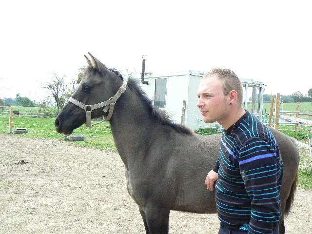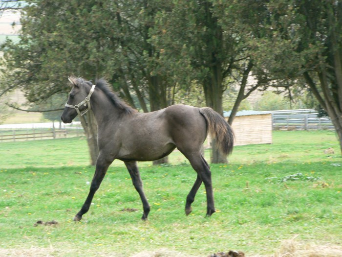 Poulain entier DSA de robe grullo (testé EE aa Dd! Homozygote noir)de 19 mois. Un poulain...et quel poulain! Attachant, proche de moi, il se montre gentil et respectueux. Une réussite dont je suis très fière!