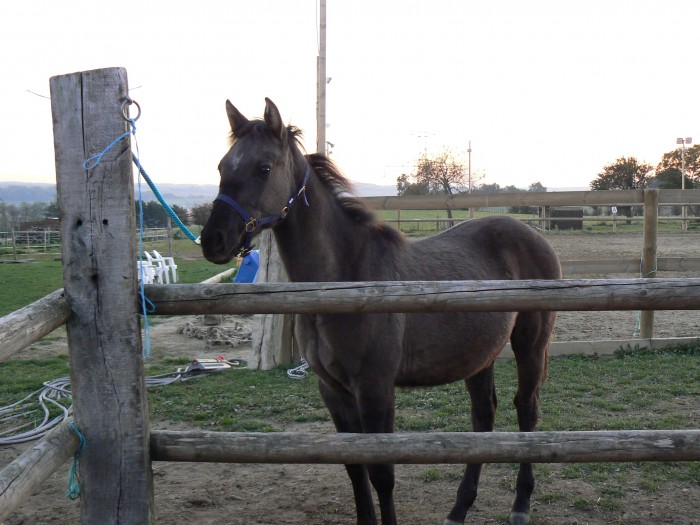 Pouliche DSA de robe grullo (testée Ee aa Dd) de 19 mois. Pouliche adorable qui a déjà connu quelques épreuves dans la vie mais se revèle être une véritable force de la nature! Sans compter le type incroyable qu'elle possède pour une pouliche n'ayant que 50% de sang arabe!