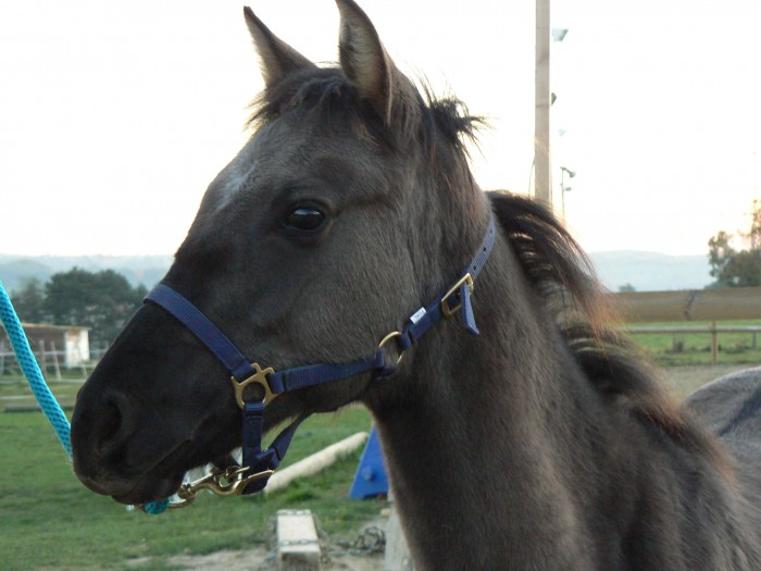 Poulain entier DSA de robe grullo (testé EE aa Dd! Homozygote noir)de 19 mois. Un poulain...et quel poulain! Attachant, proche de moi, il se montre gentil et respectueux. Une réussite dont je suis très fière!