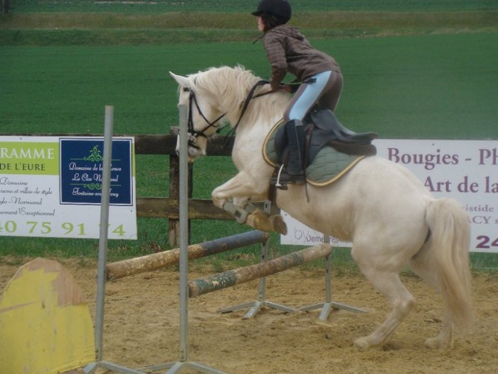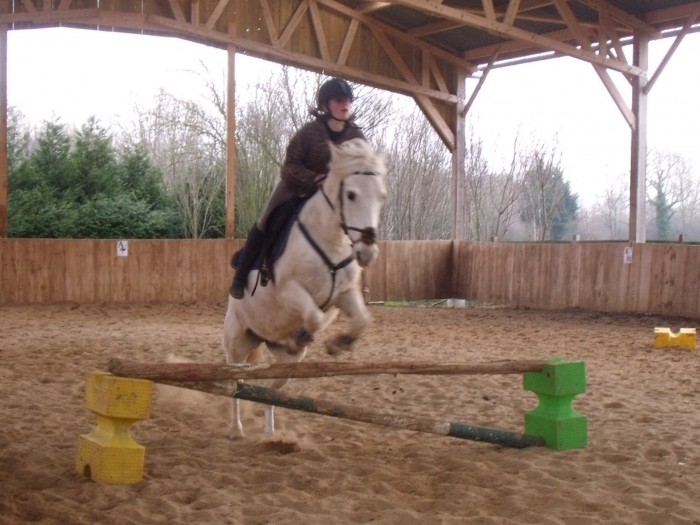 En revanche, j'ai l'impression que tu te penches un peu vers l'intérieur (mais cause ou effet de la jument qui n'est pas tout à fait en équilibre dans sa courbe, je ne sais pas