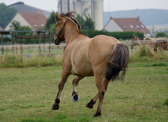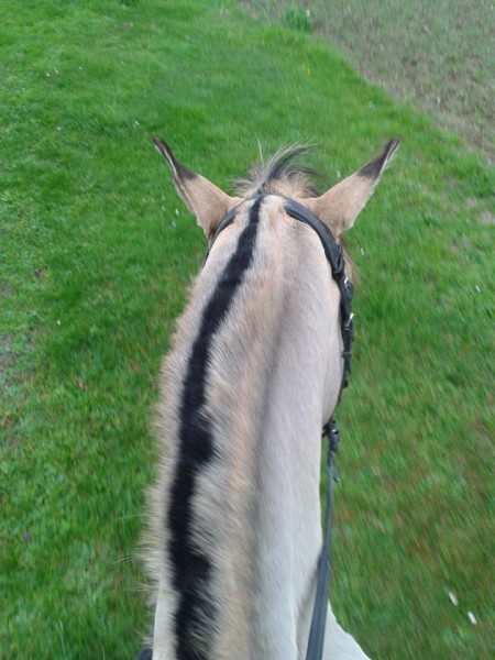 Lundi, longe en licol etho. Le gros ayant fait plein de progrès ces derniers temps, je voulais voir s'il lui était maintenant possible de s'étendre seul. Avant le licol étho ne changeait rien, mais là j'ai un pu constaté un petit progrès. A réitérer...