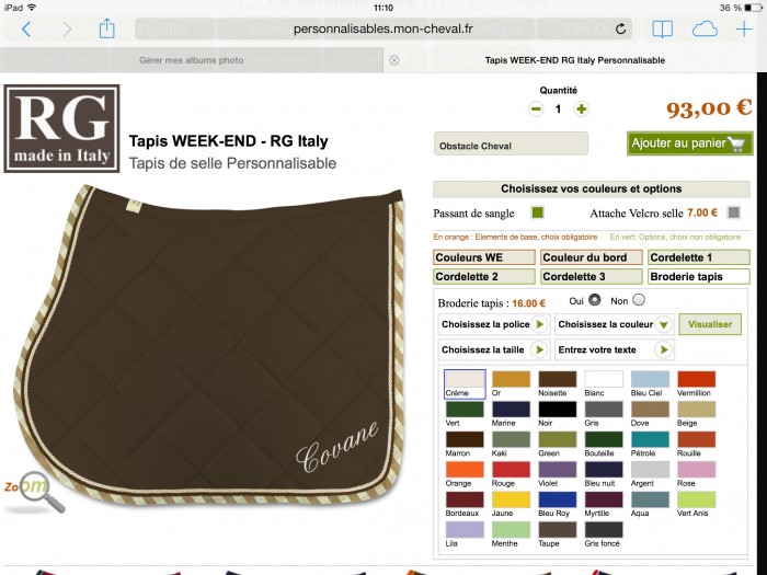 Pour ce qui est de la sellerie ne commande surtout pas là c'est trop cher ! En revendeuse RG sur facebook il y a : Twist Sellerie, Maud equitrends, Sellerie infinity, Ekychic...