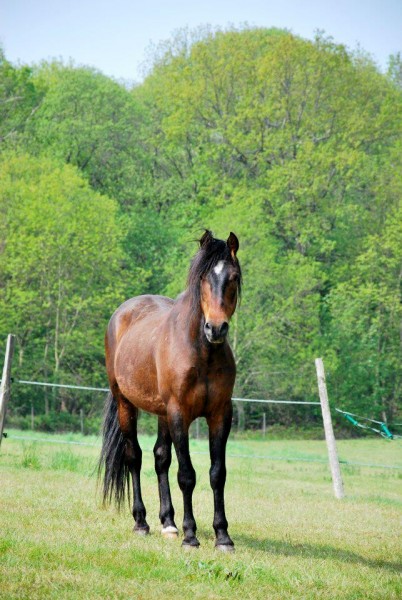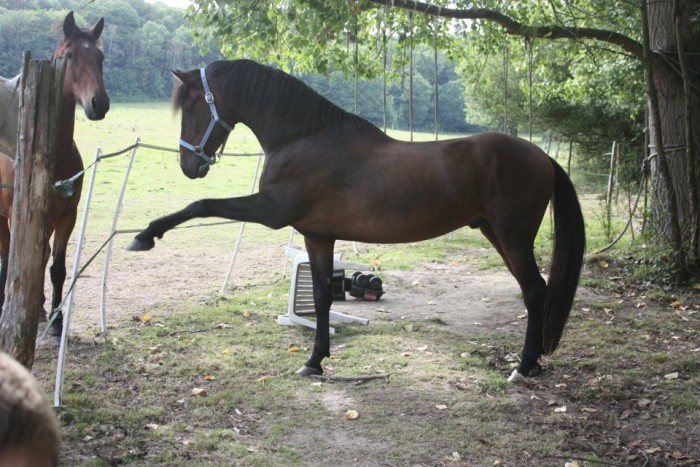 En fait d'après les papiers et ce que j'ai compris, après la fermeture de l'élevage, il a été acheté par un monsieur dans le Nord de la France, pour sa fille, castré, puis mis au pré pendant deux ans...