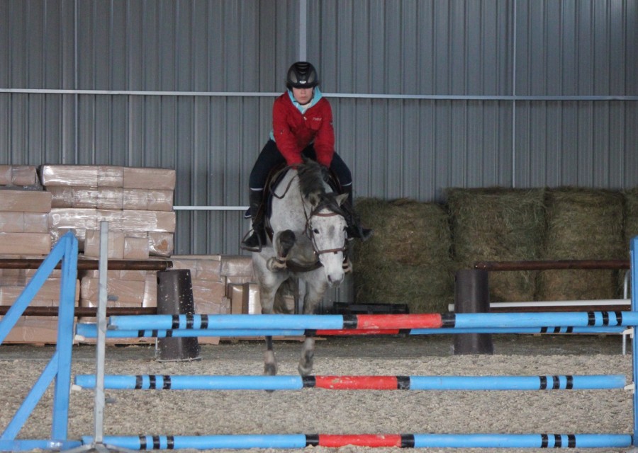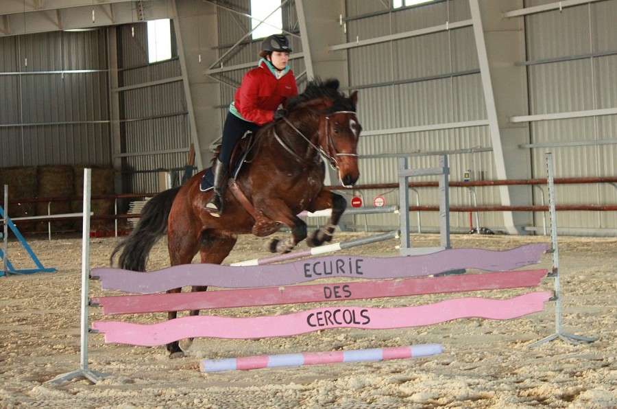 Bon sinon j'ai encore monté aujourd'hui, la balade pour rejoindre le club a été moins laborieuse pour moi qu'hier. En carrière le loulou a retrouvé sa tendance à s'encapuchonner, il va falloir régler ça fissa! Autrement, a part le fait qu'il est super chaud maintenant (une vrai pile, c'est du à sa prise de poids je pense), il était bien! Changements de pieds toujours ok donc ça c'est cool, je suis contente de moi aussi car j'ai réussi à tenir en équilibre au galop, je n'y arrivais pas hier. Je l'ai encore fait sauté, il était ravis! Quelques grosses croix puis un vertical à 1m pour finir la séance, sans soucis pour le petit cheval grassouillet, il décolle!