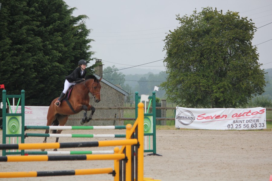 Hello je reviens d'un concours, j'ai engagé en prépa 110 pour "voir" et bien je suis venue et j'ai VU ! Déjà ça a pas top commencé : le 1 je sais pas ce qu'il fait mais mon cheval se mélange les pinceaux dans sa foulée d'abord (qui venait bien), il s'empêtre la barre sur 1 foulée derrière le 2 qui vient 5 foulée plus loin patatra le premier plan de l'oxer qui tombe, la je reprend la bête, 2 doubles qui se succèdent sur une ligne (j'aime pas ces config') mais la fin du parcours semblaient bien mieux.