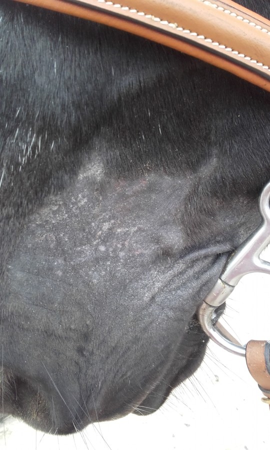 me voilà bien embêter avec Moon.. il avait une petite marque sans poils sur la tête, pensant au frottement du filet je lui met ma "crème magique " ( dont je me sert pour tout ^^ ) et aujourd'hui le voilà avec "un placard" sans poils