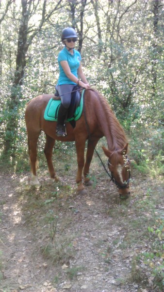 Dimanche : Petite détente en essayant le mors de Sofi (pessoa à 3 anneaux). Un poney génial. On fait quelques changements de pieds à la fin.