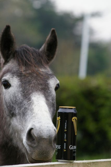 Daja je pause la canette sur les barrieres... Riviere la curieuse arrive a font donc je me depeche de bien prendre les photos avant qu'elle ne pouse la cannette! Donc tout est parfait puis, elle la touche, je regarde prete a courrir la ratraper puis en faite la cannette est tomber du coter de la puce et PAFFE... une pointe des barbelets s'enfonce dans la can et BOOOOMMMM la Riv sait faite aspergee par de la guiness